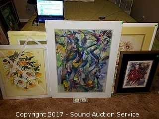 Lot #0194: Floral Watercolors, Prints & Frames