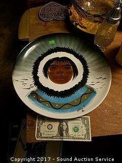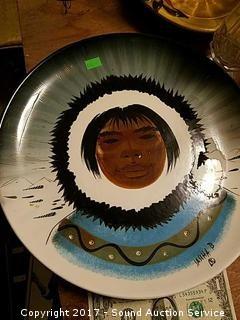 Lot #0446: Hand Painted & Signed Alaskan Indian Plate