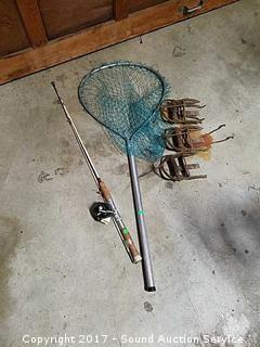 Lot #0567: Mole Traps, Fishing Rod & 17" Net