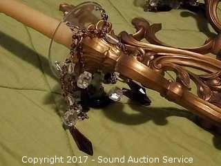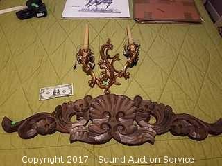 Lot #0192: Ornate Wall Sconce Candelabra & Wood Wall Decor