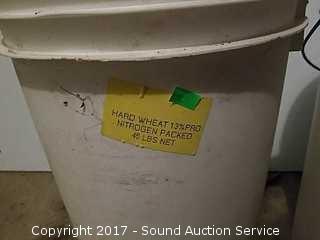 Packaged in 1988. One is not marked, sounds like bean or corn. Approx. 40lbs of beans or corn. 45lbs of hard wheat.
