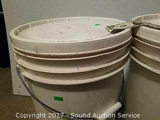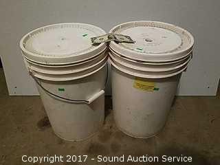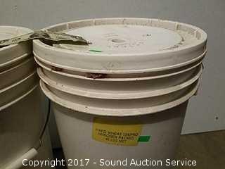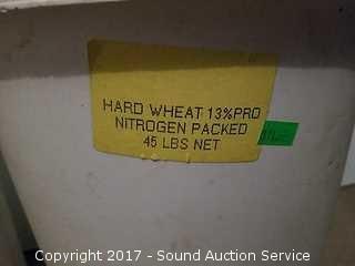 Packaged in 1988. One is not marked, sounds like beans or corn. Approx. 40 to 45lbs of beans or corn. 45lbs of hard wheat. Both are sealed.