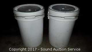 Packaged in 1988. One is missing the label but sounds like beans, approx. 40 lbs. 45lbs of soft wheat. Both are sealed.