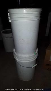 Packaged in 1988. One bucket is unmarked, sealed, sounds like beans, maybe corn. Both buckets are approx. 45 lbs. Other is long grain white rice.