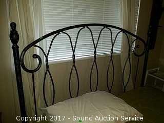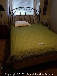 Lot #0204: Queen Size Bed w/Metal Frame & Bedding