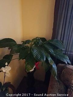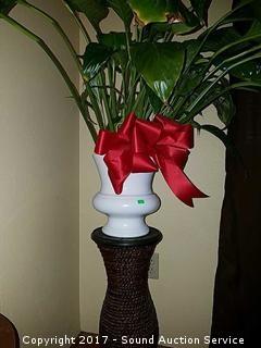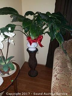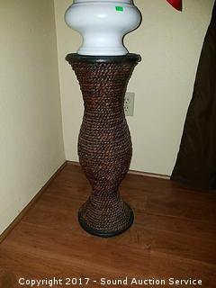 Lot #0314: Rope Wrapped Plant Stand w/Broad Leaf Plant