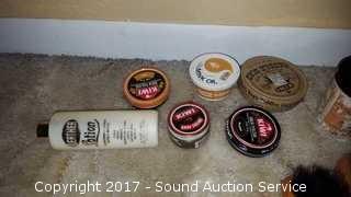 Comes with polish, brushes, and shaving brushes.