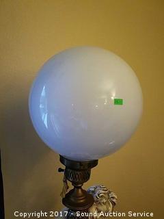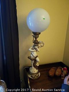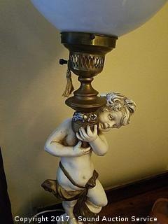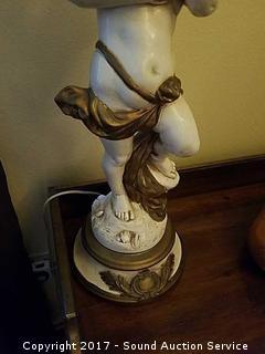 Lot #0318: Vtg. Milk Glass Globe Child Sculpture Table Lamp