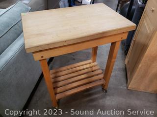 Lot #0014: 2-Tier Butcher Block Top Kitchen Island Cart