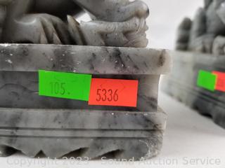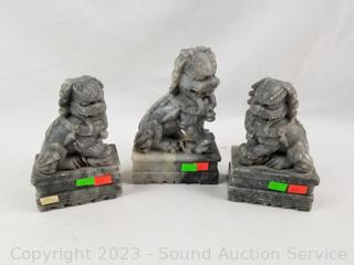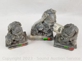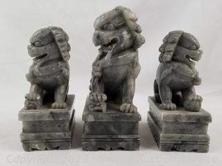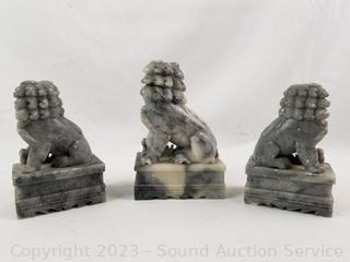 Lot #0105: 3 Carved Stone Foo Dog Sculptures