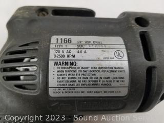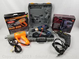 Black & Decker 3/8" VSR electric drill, Chicago Electric heat gun, Craftsman Manual Scroller Saw, Ryobi 3/8" electric drill. All work.
