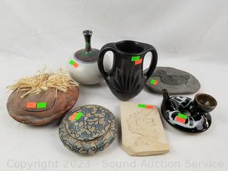 213 Lots including; Concrete Bench, Outdoor Shed, Wine Racks, Kitchen Island Carts, Tufted Faux Leather Sofa, Rattan Patio Chair Set, Vtg. Insulators, DVD Movies, Native (Artwork, Kachina Dolls, Woven baskets, Decor), Assorted Tools, Crafting Supplies, Dollhouses, Dollhouse Miniatures, KitchenAid Countertop Mixer, US Coins, Breyer Horses, Sewing Supplies, Lawn & Garden Tools, Fine China & More!!!