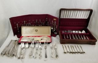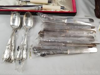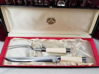 Lot #0109: Assorted Silver Plate & Pewter Flatware, Carving Set