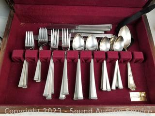 Refer to photos for some brands, styles. Comes with flatware chest.