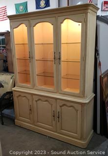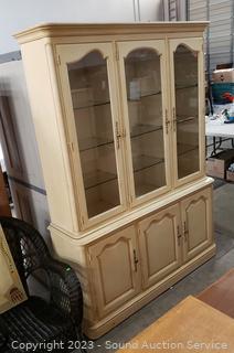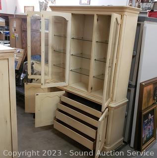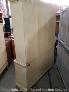 Lot #0023: Ivory Distressed Finish 2pc Hutch