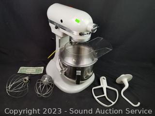 Lot #0107: Kitchen Aid White Countertop Mixer - Works