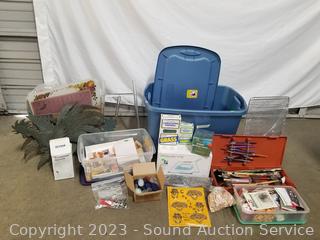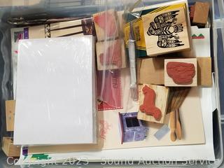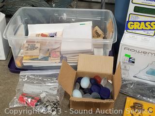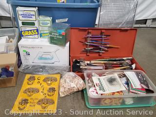 Rowenta Steam iron, rubber stamps, landscaping material, filler beads, molds, paint brushes, scissors, rotisserie motor & more. Refer to photos for lot contents.
