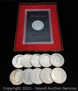 Lot #0245: 10 Bicentennial 1776-1976 & (1) 1973 Eisenhower Dollars