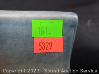 Stamped with a blue R on the bottom. Some crazing, don't see any major issues. 5" x 5" x 5".