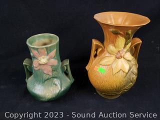 Lot #0176: (2) 1944 Roseville Clematis 2-Handle Vases