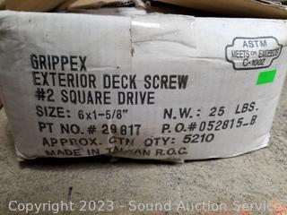 #2 Square Drive 6x1-5/8" Exterior Deck Screws, 2-3/8" 8d Vinyl sinker nails. Both full or mostly full.