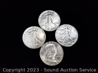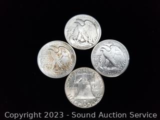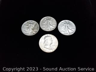 Lot #0244: (3) Walking Liberty & (1) Franklin 90% Silver Half Dollars