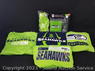 Lot #0232: 4 Seahawks Shirts, Gift Set & Mittens