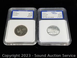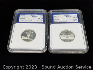 2008S New Mexico PR70 DCAM Silver, 2007S Utah PR70 DCAM Silver, 2007S Montana PR70 DCAM Silver, 2008S Arizona PR70 DCAM Silver, 2008S Oklahoma PR70 DCAM Silver, 2007S Wyoming PR70 DCAM. ATTN: We are not coin or currency experts or graders, please use your own judgement when bidding.