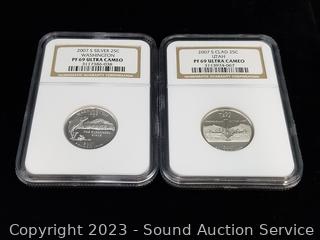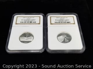 2007S Silver Idaho 25c PF69 Ultra Cameo, 2007S Clad Utah 25c PF69 Ultra Cameo, 2007S Silver Washington 25c PF69 Ultra Cameo, 2007S 5c PF69 Ultra Cameo, 2007S Silver Utah 25c PF70 Ultra Cameo, 2007S Silver 10c PF69 Ultra Cameo. ATTN: We are not coin or currency experts or graders, please use your own judgement when bidding.