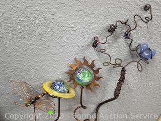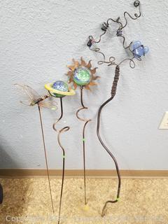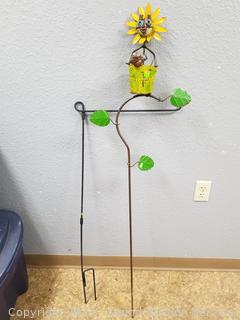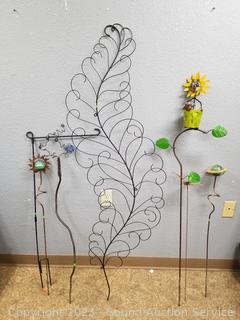 40" flag stake, 33" to 53" metal art stakes, 60" x 22" metal art leaf decor.
