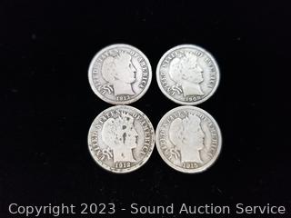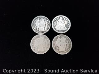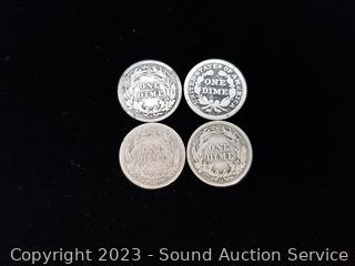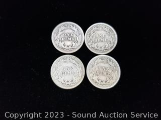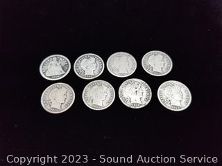 Lot #0243: (7) 1906-1915 Barber Liberty Dimes (1) 1856 Seated Liberty Dime