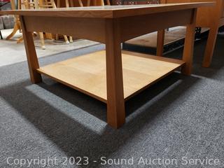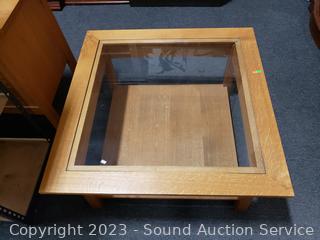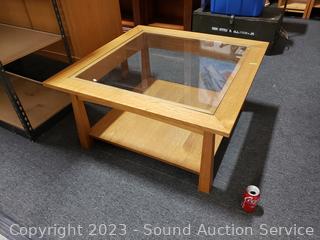 Lot #0022: Nice Oak Glass Top Coffee Table