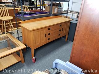 In excellent condition. Solid wood construction, very well made. Made in McMinnville, Oregon. 32" H x 62.5" W x 19" D.