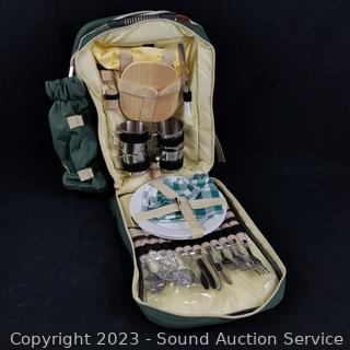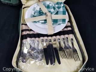 Appears to be service for 4. Complete with dishes, utensils, accessories. Don't see any issues.
