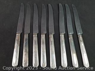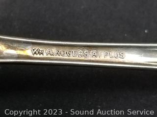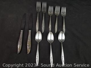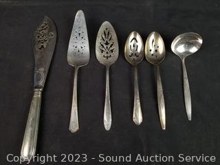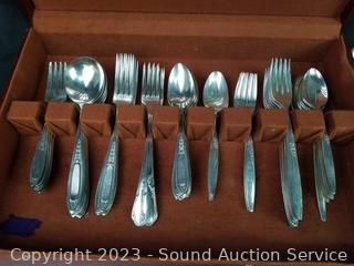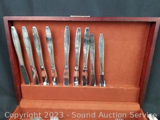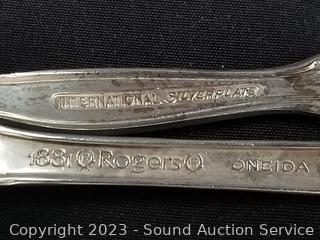 10pc Heirloom sterling, TW: 306g, 10.7oz (not including knives). Chest has several different brands of silverplate flatware, Simon & George Rogers, Oneida possibly others. Refer to photos for lot contents.
