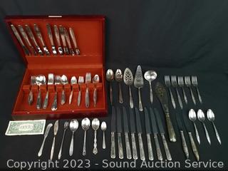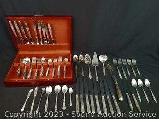 Lot #0062: 10pc Sterling & Chest Full of Silverplate Flatware