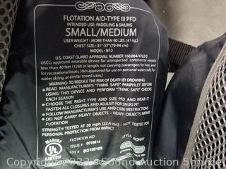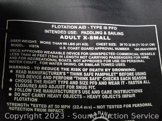 NRS Adult Small 28-32" chest, Astral S/M 31-37" chest.