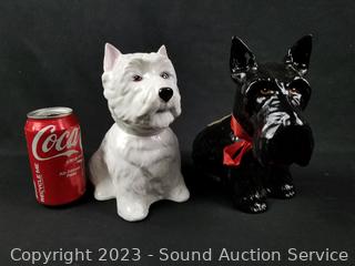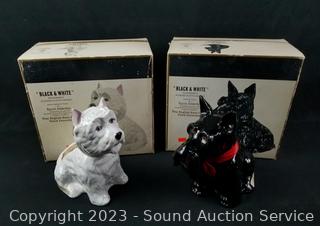 Lot #0204: 2 English Scottish Terrier Black & White Whiskey Decanters