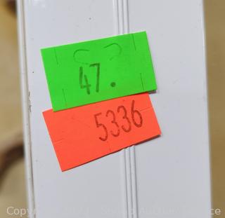 334 Lots including; La-Z-Boy Power Recliner, La-Z-Boy Tufted Ivory Sofa & Armchair, Native Zuni Hand Carved Stone Fetishes, Pottery, Artwork, Baskets, Assorted Tools, Assorted Dinosaur & Other Figures, Trading Cards, Footwear, Vtg. Cameras, Sewing Machines/Supplies, Scale, CD's/DVD's/Records, Laptops, Camping Supplies, Kitchen Cookware, Arts & Crafts Supplies, Miniature Dollhouse Furniture & Crafts, Utility Carts, Antique Clocks, Diecast Cars, Pink & Turquoise Fiesta Ware, Bose Speakers, Original Artwork, Keller Oak Dining Table, Upright Freezer, Retro Space Needle Floor Lamp & More!!!