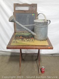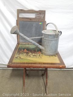 334 Lots including; La-Z-Boy Power Recliner, La-Z-Boy Tufted Ivory Sofa & Armchair, Native Zuni Hand Carved Stone Fetishes, Pottery, Artwork, Baskets, Assorted Tools, Assorted Dinosaur & Other Figures, Trading Cards, Footwear, Vtg. Cameras, Sewing Machines/Supplies, Scale, CD's/DVD's/Records, Laptops, Camping Supplies, Kitchen Cookware, Arts & Crafts Supplies, Miniature Dollhouse Furniture & Crafts, Utility Carts, Antique Clocks, Diecast Cars, Pink & Turquoise Fiesta Ware, Bose Speakers, Original Artwork, Keller Oak Dining Table, Upright Freezer, Retro Space Needle Floor Lamp & More!!!