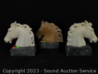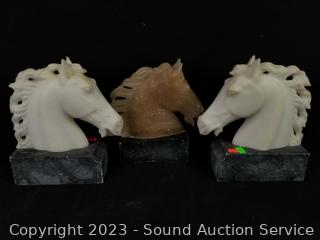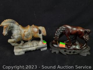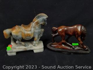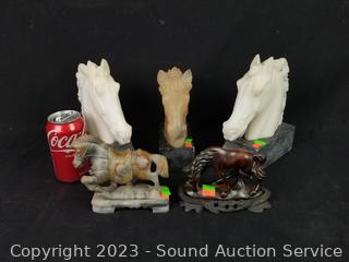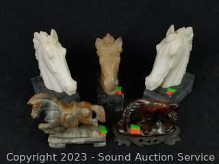 Lot #0068: 4 Carved Stone & 1 Wood Carved Horse Sculptures