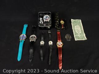 Lot #0097: 7 Mickey Mouse, Santa & Native Print Watches