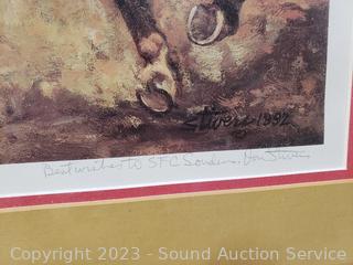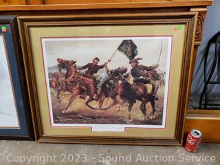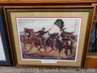 Framed, matted with glass. #243/500. 27" x 33". Image of 1863 6th US Cavalry. Some scuffs, wear to frame.