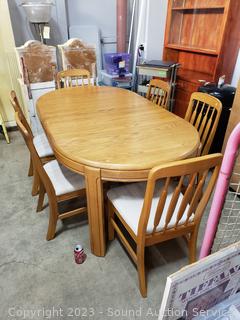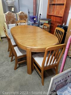 Lot #0031: Keller Oak Round Dining Table w/6 Chairs & 3 Leaves