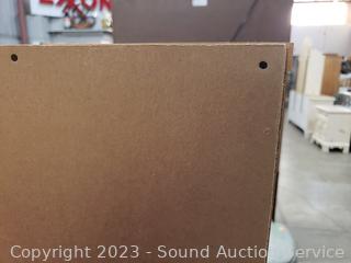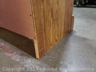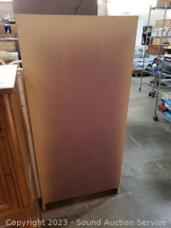 Particle board construction, wood grain finish. Don't see any issues. 60" H x 28.5" W x 11" D.