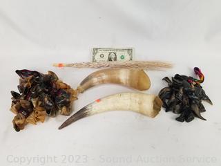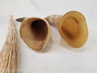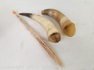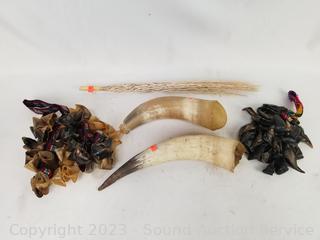 Lot #0086: Native Dance Deer Toenail Bells, 2 Bull Horns