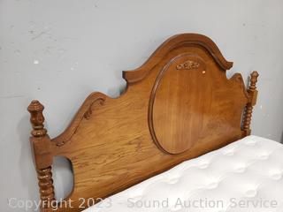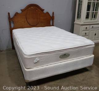Lot #0019: Oak Queen Bed w/Beautyrest Mattress & Boxspring