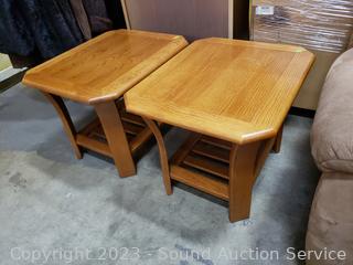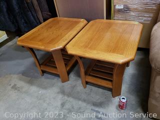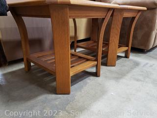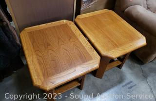Lot #0022: Pair of Oak 2-Tier Side Table