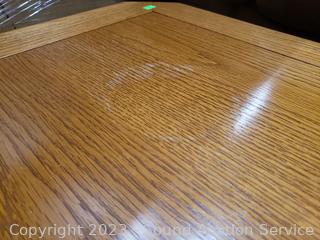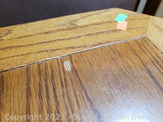 Appears to be solid wood construction. Some minor wear to finish, overall great condition. Made in USA. 21" H x 23" x 28".