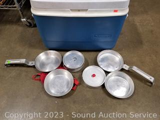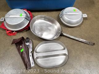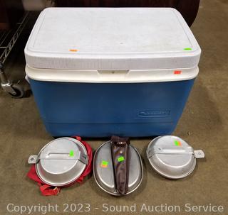 Lot #0305: Rubbermaid Cooler w/3 Vtg. Mess Kits